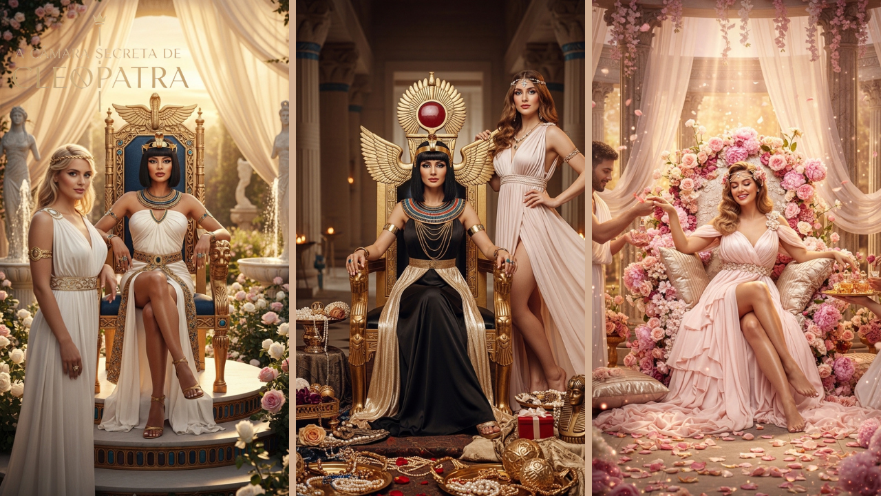 O Portal Cleópatra & Afrodite é uma ativação visual completa, criada para reprogramar sua percepção, sua postura interna e a frequência da mulher que: